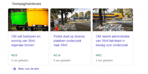 Hetzelfde geldt voor nieuwberichten. Wanneer wij een actueel nieuwonderwerp Googlen, zoals de stint, krijg je direct helemaal bovenaan het nieuws: