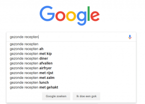 Wanneer je zoekt op een keyword in Google krijg je een mooie lijst met keyword ideeën.