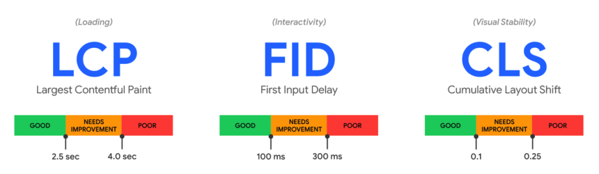 Google biedt op dit moment drie verschillende Core Web Vitals aan die te maken hebben met de user experience te beoordelen, te optimaliseren en continu te monitoren. De Core Web Vitals gaan over laden (LCP), responsiveness (FID) en stabiliteit tijdens het laden (CLS). Deze aspecten zijn allemaal meetbaar. De aspecten zijn: