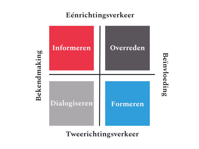 Om te vermijden dat er eenrichtingsverkeer ontstaat op het gebied van communicatie, heeft Betteke van Ruler het communicatiekruispunt beschreven. Dankzij het communicatiekruispunt kun je per situatie bekijken welke communicatiestrategie past bij een specifieke situatie. In deze blog vertellen we je alles over dit model.