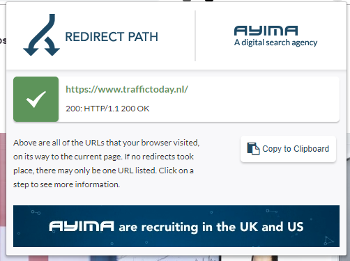 Deze HTTP- en redirectchecker toont je de statuscodes en het omleidingspad voor alle URL’s of stappen die je browser heeft ingeladen, voordat hij op de uiteindelijke pagina terecht kwam. Met dit hulpprogramma worden alle URL’s in een redirectchain geïdentificeerd, evenals eventuele tijdelijke omleidingen (302’s) die van invloed zijn op het doorgeven van linkjuice. Naast het markeren van omleidingen en mogelijke fouten, toont deze extensie ook andere HTTP-headers, zoals servertypes en caching headers en het server-IP-adres. Een simpele, maar effectieve Chrome extensie.