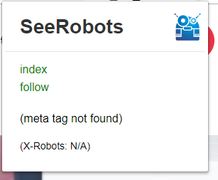 SEEROBOTS is een erg handige Chrome extensie om heel snel en gemakkelijk te zien of de pagina die je bekijkt beperkingen op indexatie heeft, bijvoorbeeld in de robots.txt of in html code zelf. Dit wordt heel snel weergegeven in kleuren. Een compleet groen blokje geeft aan dat de pagina geïndexeerd mag worden en dat deze ook op ‘follow’ staat. Een half groen en half rood blokje geeft aan dat de pagina wel geïndexeerd mag worden, maar de links niet gevolgd mogen worden (no-follow). Een half rood en half groen blokje geeft juist het omgekeerde aan, in dit geval mag de pagina niet geïndexeerd worden maar mogen de links wel gevolgd worden. Met een compleet rood blokje weet je zeker dat de website én niet geïndexeerd én de links niet gevolgd mogen worden. Erg handig als een pagina per ongeluk ingesteld staat op no-index, met deze tool kun je dat meteen zien. Je hoeft hierdoor niet lang te zoeken naar de mogelijke oorzaak van het verliezen van traffic en rankings.