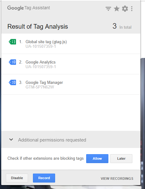 De Tag Assistant-Chrome extensie van Google is een eenvoudig hulpmiddel om te controleren of je Google Tags goed werken en correct worden geactiveerd. Vaak zul je deze tool gebruiken voor Google Analytics en Google Tag Manager. Zo kan er snel gekeken worden of de Tag goed werkt en het de juiste data doorschiet. Met deze extensie kun je gemakkelijk naar een willekeurige pagina gaan en Tag Assistent vertelt welke tags aanwezig zijn, rapporteert eventuele fouten en stelt verbeteringen voor die kunnen worden aangebracht aan de website.