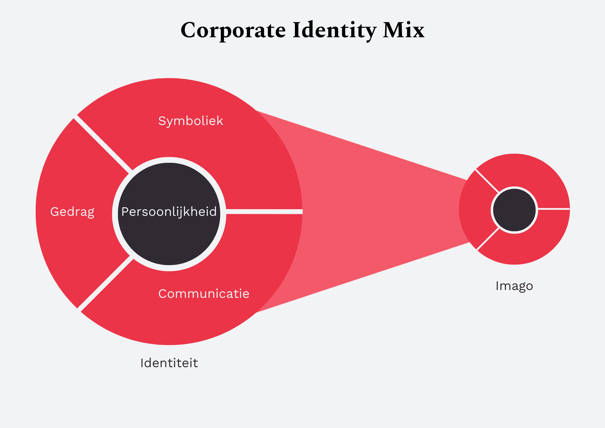 - Bij de Corporate Identity Mix draait het vooral om de persoonlijkheid van je organisatie. Birkigt en Stadler omschrijven het als de manier waarop je organisatie reageert op prikkels van buitenaf. Je moet dus nagaan hoe je bedrijf dit in de praktijk doet. Het is daarbij van belang dat je niet bedenkt hoe je zou willen reageren op prikkels, maar hoe je daadwerkelijk reageert. Daarnaast omvat het onderdeel ‘Persoonlijkheid’ ook de doelstellingen en de missie van een organisatie. Waarom besta je? Ook bestaat de persoonlijkheid van een bedrijf uit structuur en cultuur.