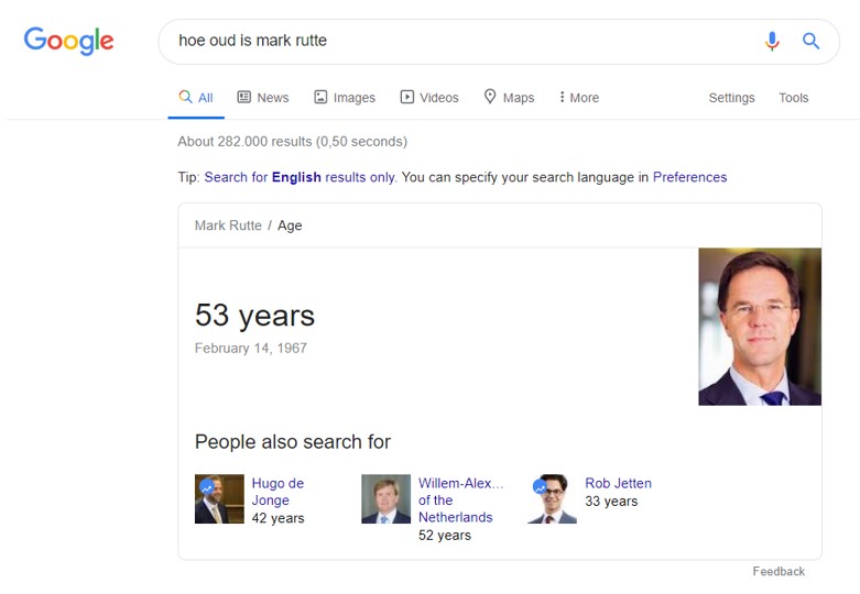 Als je weleens het volgende gezien hebt in de zoekresultaten, dan heb je al wel kennis gemaakt met de Knowledge Graph van Google: