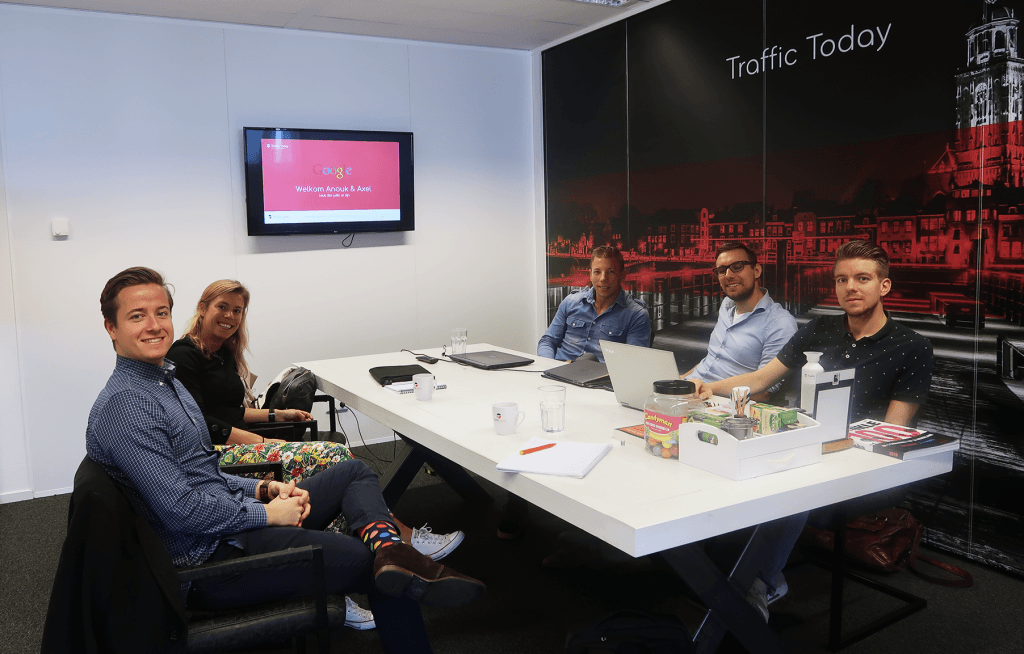 De afgelopen tijd zijn wij als bedrijf flink gegroeid. Zo begonnen we in juni 2017 met zes mensen, terwijl ons team nu, anderhalf jaar later, twintig specialisten telt. Noodzakelijk, want er zijn steeds meer bedrijven voor wie we de online marketing campagnes beheren. Natuurlijk willen we door blijven groeien en daarom is het essentieel om vooruit te kijken en in te spelen op eventuele kansen. Tijdens de meeting met Axel en Anouk van Google bespraken we waar de kansen liggen voor Traffic Today en waar we ons op gaan focussen in het nieuwe jaar.