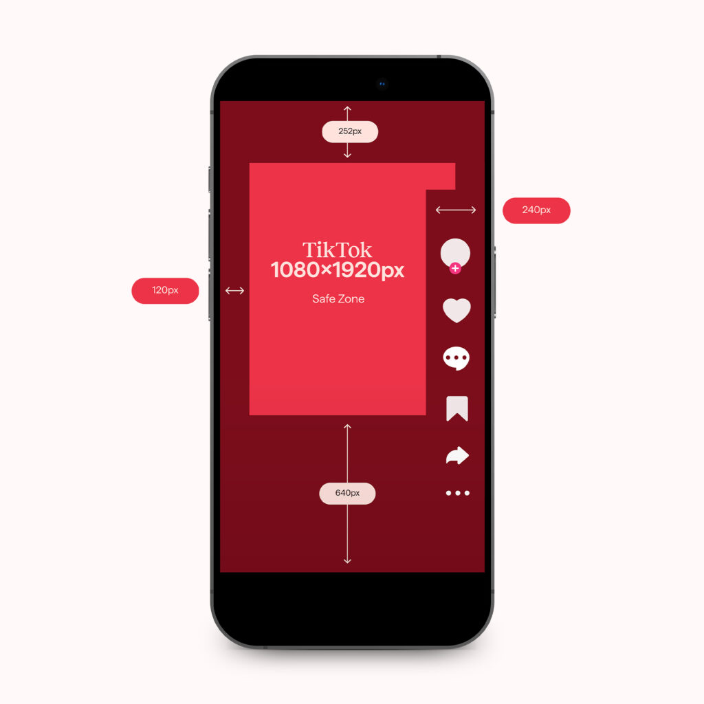 Op TikTok wordt alle content altijd op volledig scherm bekeken, wat zorgt voor een meeslepende en overzichtelijke gebruikerservaring. Dit maakt het aanbevolen formaat binnen dit platform des te eenvoudiger. Echter, is het op TikTok wel van belang om bij het ontwerpen van de content rekening te houden met de aangegeven ‘safe zones’ om ervoor te zorgen dat je inhoud goed leesbaar blijft.