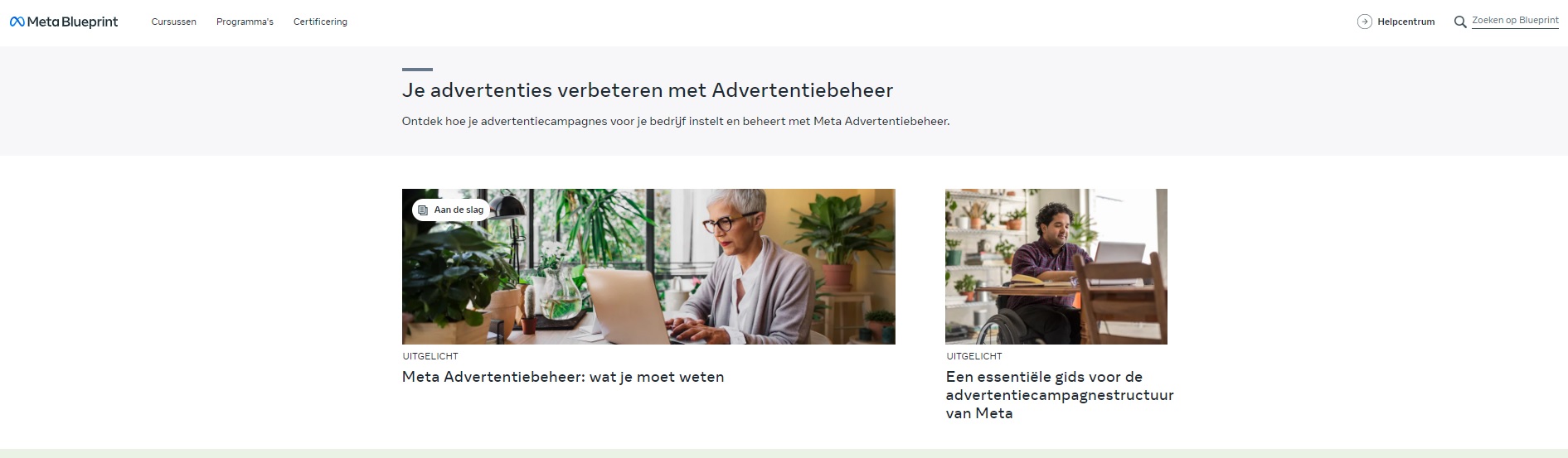 De tijd dat advertising marketeers de budgetten van hun bedrijf alleen spendeerden in Google of Bing, ligt al lang achter ons. Ook Facebook en Instagram hebben geruime tijd een vinger in de pap als het gaat om de ‘ad spent’. Advertising marketeers moeten hun gereedschapskist aan kwaliteiten daardoor steeds verder uitbreiden. Om marketeers wegwijs te maken binnen Meta, heeft het platform een eigen kennisplatform: Facebook Blueprint. Facebook Blueprint is geheel kosteloos en is mede daarom een interessant platform voor marketeers die zich verder willen ontwikkelen. In dit blog lees je wat je zoal leert op Facebook Blueprint.