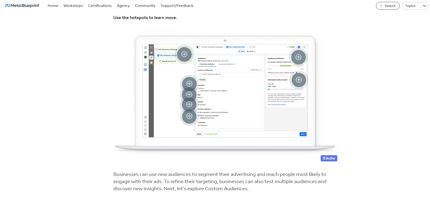 Succesvolle social advertising staat of valt bij het instellen van de juiste targeting. Daarom leert Facebook Blueprint je onder andere hoe je doelgroepen moet maken en op welke matrices je kan filteren. Ontzettend handig!