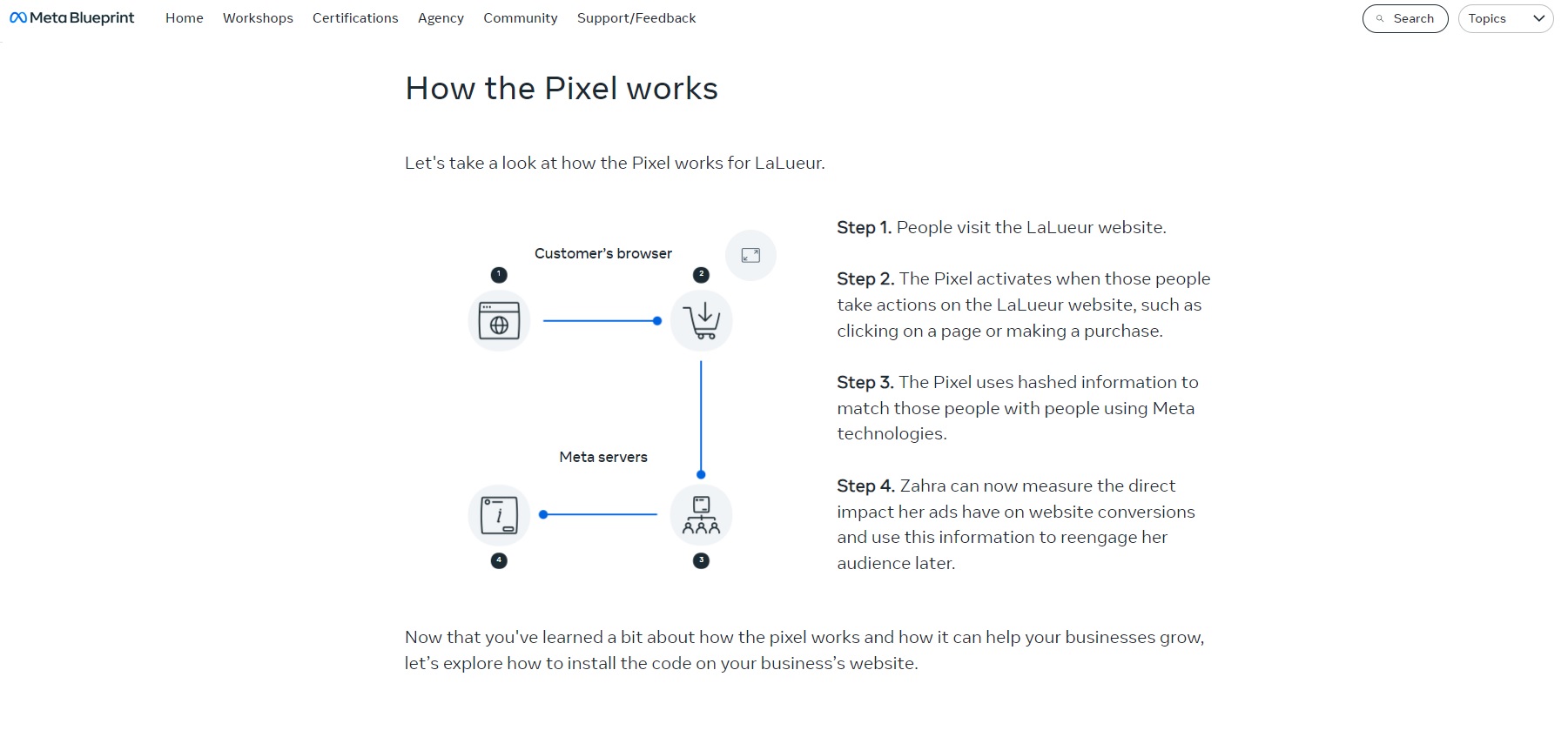 Om je resultaten van je social ads campagnes te kunnen meten, is het belangrijk dat je weet hoe je je Facebook pixel instelt. Dit is een stukje code dat je toevoegt aan de website, zodat het gedrag getrackt kan worden. Facebook Blueprint leert het je stap voor stap!