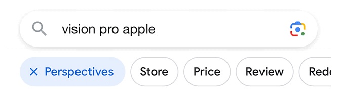 Google Perspectives is een nieuwe snippet van Google, waarmee informatie van gebruikers op fora en sociale media zoals TikTok en Youtube Shorts een prominentere rol gaat spelen op de zoekresultatenpagina. Perspectives is op dit moment alleen nog maar te gebruiken in Engeland / Amerika (jul. 2023).