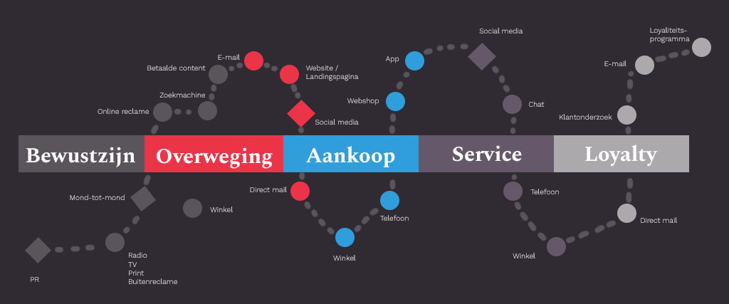 - Wanneer je gebruikmaakt van dit marketingmodel, bereik je de doelgroep gedurende de hele klantreis. Je hebt hierdoor meerdere touchpoints in de verschillende fases waarin iemand zich kan bevinden.