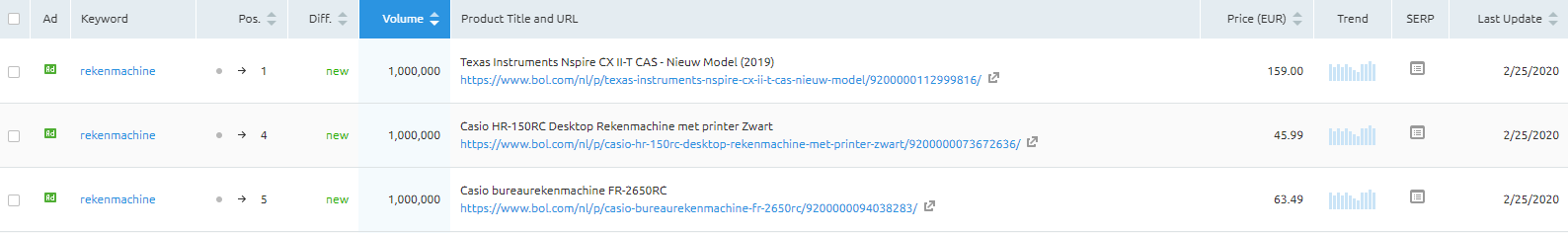 Het rapport ‘PLA research’ is ideaal voor het analyseren van de prijsstrategie van jouw beste concurrenten. Je kunt hun Google Shopping advertenties, ranking, zoekwoorden, maar ook producttitel en bijbehorende URL bekijken.