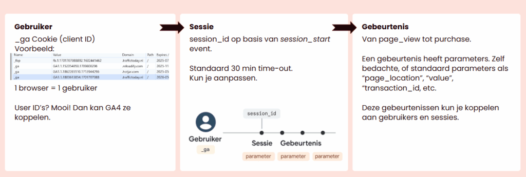 Pro tip: weet altijd welk scope-niveau je bekijkt voordat je conclusies trekt. Eén gebruiker kan meerdere sessies hebben, en één sessie meerdere gebeurtenissen. Snap je die structuur? Dan snap je de data.