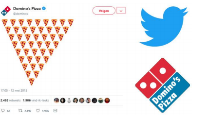Ook pizzaketen Domino’s speelt zeer handig in op het gebruik van emoticons. Een pizza bestellen is al erg gemakkelijk, maar Domino’s gaat nog een stapje verder. Het enige dat je hoeft te doen is met je Twitter-account een te sturen naar Domino’s en je hebt je bestelling geplaatst. Dit is overigens alleen mogelijk als je je Twitter-account hebt gekoppeld aan je Domino’s profiel. Je kunt je voorstellen dat bedrijven met dit soort acties een beter imago creëren en bovendien een stuk meer producten of diensten verkopen.