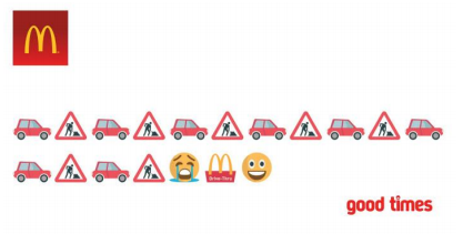 Bij de marketingcampagne Good Times at McDonald’s lag de focus volledig om emoticons. De campagne bestond uit 5 verschillende uitingen. Alle 5 weerspiegelen ze voor iedereen frustrerende en/of herkenbare situaties. Deze situaties worden door de McDonald’s ‘opgelost’. Van urenlang winkelen met je vrouw tot aan in de file staan door werkzaamheden aan de weg, bij McDonald’s sluit je deze ervaringen op een goede manier af. We’re lovin it! De marketingcampagne bedoelen we dan natuurlijk !