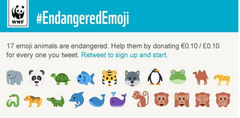 Het WWF startte een Twitter-campagne met 17 emoticons van bedreigde diersoorten, met o.a. de panda en de tijger . Doneren kon door de hashtag #EndangeredEmoji te volgen, het bericht te retweeten of door te reageren op het bericht met een van de 17 emoticons. Laatstgenoemde optie maakte het mogelijk op een specifiek diersoort te steunen. De donatiekosten bedroegen slechts €0.10 per keer. De Twitter-campagne ontving ongeveer 559.000 vermeldingen en meer dan 59.000 aanmeldingen in de eerste drie maanden sinds de release. Reken maar uit!