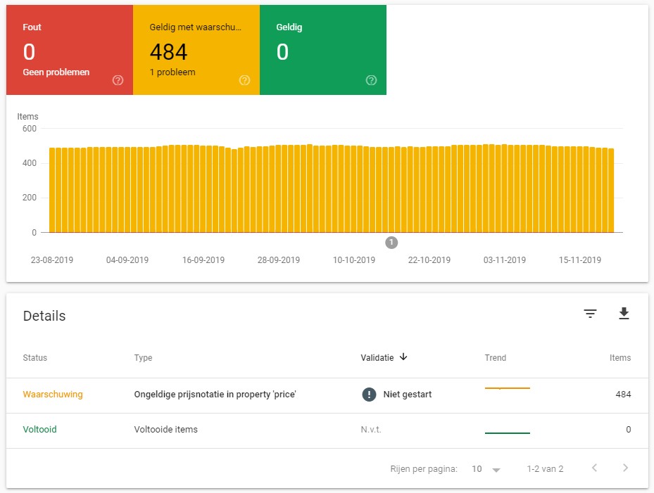Google Search Console is natuurlijk een belangrijke tool voor je website en dat blijkt ook nu maar weer want je kunt ook voor de structured data een uitgebreid rapport vinden. Wanneer je Google Search Console opent kun je dit rapport vinden onder optimalisaties. Per property kun je een rapport bekijken, in dit rapport kun je inzicht krijgen in wat er goed gaat maar ook wat aandacht nodig heeft.