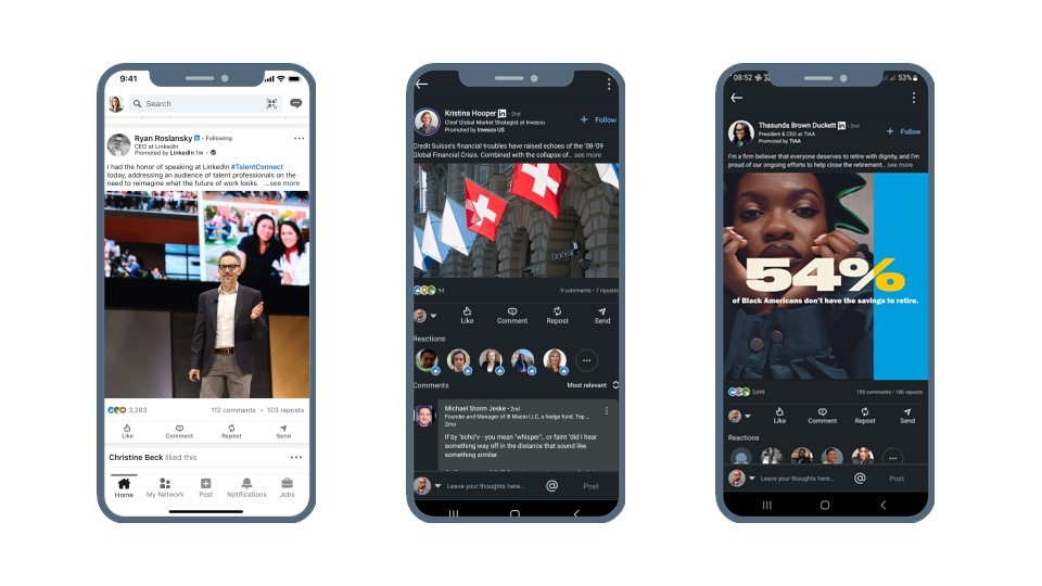 Linkedin Thought Leadership Ads zijn gesponsorde berichten op Linkedin die niet gepusht worden met het bedrijfsprofiel, maar met een persoonlijk account. Eerder gaf Linkedin haar gebruikers al de mogelijkheid om (betaalde) InMails te versturen vanuit persoonlijke profielen, maar Thought Leadership Ads verschijnen echt in de tijdlijn van gebruikers.