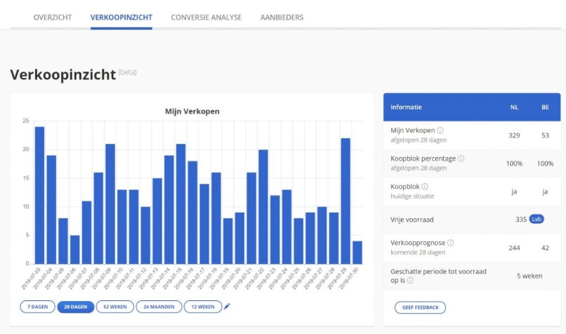 Naast de prestatiescore en koopblok, kan je als verkoper ook op productniveau kijken hoe je scoort. Dit is erg handig omdat je heel specifiek kunt kijken hoe jij scoort ten opzichte van de concurrenten.