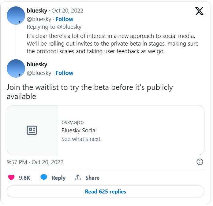 BlueSky is een nieuw social media platform, dat als voornaamste doelstelling heeft om gebruikers het oude Twitter terug te geven. Ironisch genoeg werd BlueSky opgezet door Jack Dorsey, de voormalig CEO en oprichter van Twitter. Uniek aan BlueSky is het gegeven dat ze een inkijkje bieden in de wijze waarop de app gebouwd is dankzij het AT protocol, een initiatief dat Dorsey al in 2019 opzette om zo het vertrouwen van de gebruikers te winnen of houden.