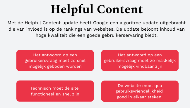 Wanneer je website niet in lijn is met de pijlers van de E-E-A-T, kan het voorkomen dat je in de toekomst organische rankings op Google gaat verliezen. Google is namelijk altijd bezig met het verbeteren van de zoekmachine. Ze streven er dan ook naar dat de zoekmachine relevante informatie van de hoogste kwaliteit biedt aan hun gebruikers.