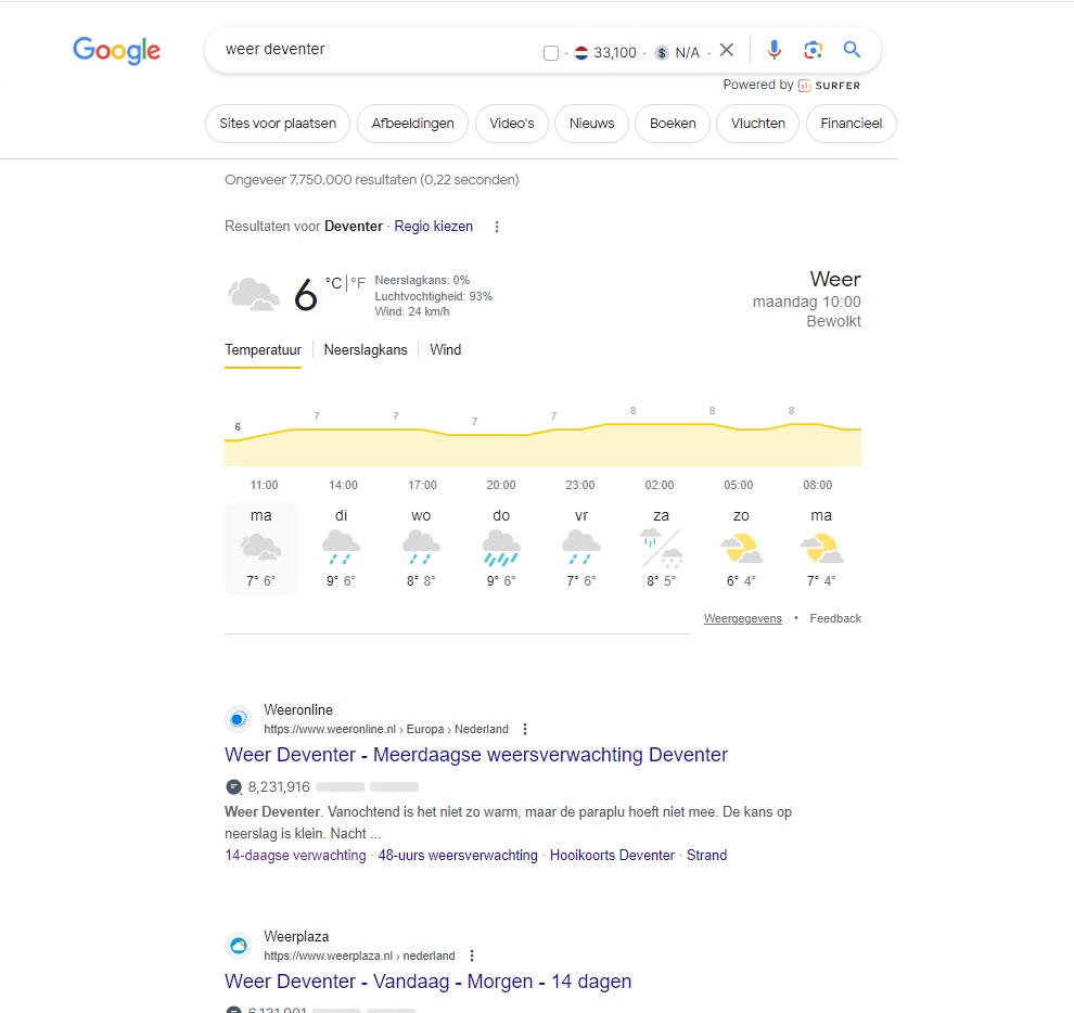 Zero click search is een nieuwe vorm van zoeken waarbij gebruikers direct antwoorden op hun vragen krijgen zonder door te klikken naar een specifieke website. In plaats daarvan levert de zoekmachine, zoals Google, direct relevante informatie op de zoekresultatenpagina, die ook wel SERP genoemd wordt. Dit kan variëren van antwoorden op vragen, korte samenvattingen, grafieken, tabellen, tot zelfs directe actiegerichte stappen, zoals het weerbericht, valutakoersen, berekeningen, en meer.