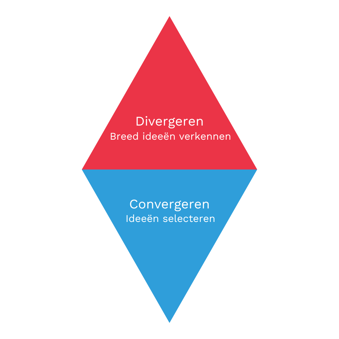 Tijdens de zogenoemde convergeerfase ga je keuzes maken. Welke ideeën spreken je het meest aan? Welke ideeën zijn realistisch? En waar wil je mee verder? Het kan ook zijn dat je twee ideeën perfect met elkaar kan combineren. Hoe dan ook: het vinden van een balans tussen originaliteit, uitvoerbaarheid en relevantie voor je doelgroep is essentieel tijdens deze fase. Ook hierbij is het weer belangrijk om een tijdslimiet te bepalen. Zo ga je zo efficiënt mogelijk te werk.